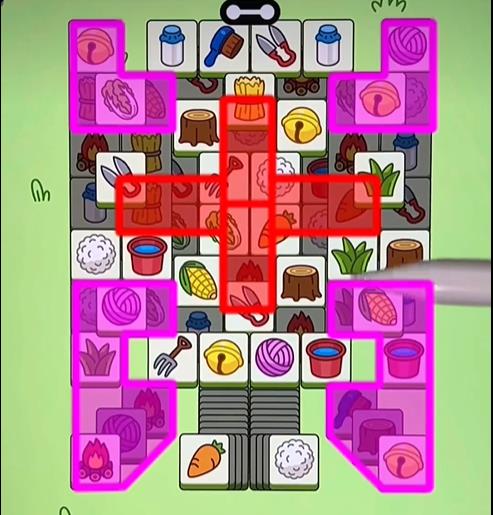3、玩家在进入今天的关卡之后,从上方一层层的往下拿,即可轻松的度过关卡。