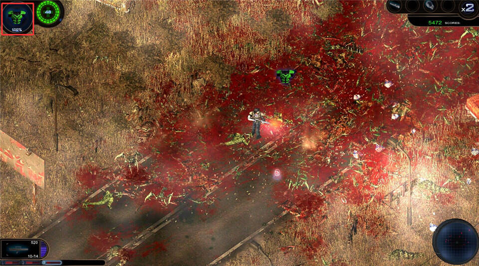 拾取后装备轻量级护甲,可以在左上角确认护甲的状态。(该护甲类型本体中的SR-2护甲)
