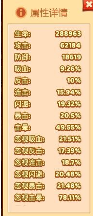 4、给大家看一下小编的基础值以及加成属性。基本上在小编这个层次就能很轻松的将boss击败了。这一次小编运气比较好。近50%击晕效果基本上每一击都触发了效果。