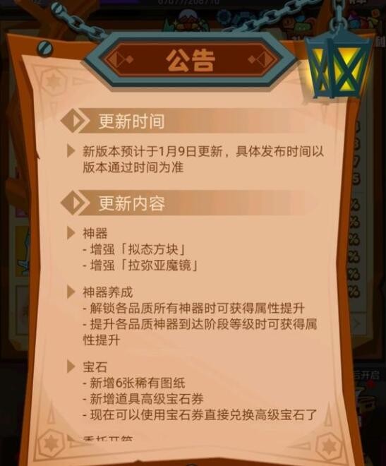 更新时间:这一次的新版本更新将于1月9日更新,具体发布的时间以版本通关的时间为准。