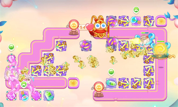 5:然后就是按照我们这种进度,可以多放置几个船锚,优先升级靠近萝卜的道具,最后的画面就是船锚满天飞了,如图所示。