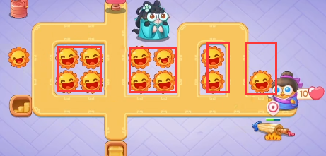 4、然后我们利用太阳的范围伤害将附近的几个珠子给小蛇打掉,如图所示。