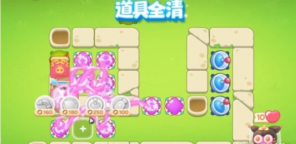 4、我们在如图所示的位置补上3个魔法球,轻松消灭掉木桶兔。