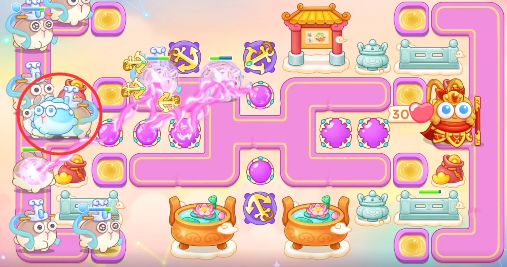 5、这一关会有不少的冰冻兔,注意给炮塔解冻。