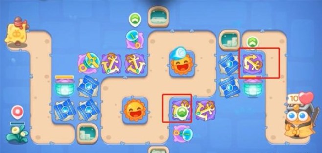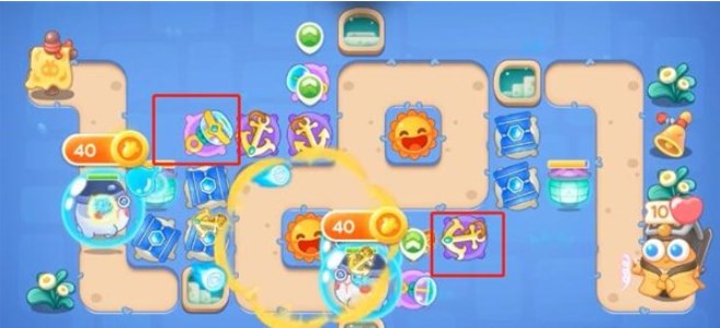 3、第三波左侧加一蓝色护盾塔,升一级,把船锚升满级,再加一船锚。