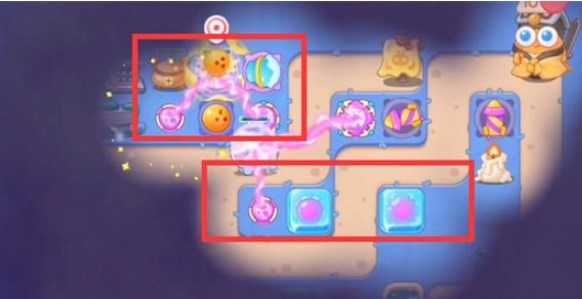 2.打掉后空出的位置继续放置魔法球,这一波开始打看的到的障碍物,进来多放置一级魔法球,解开地图的雾霾;