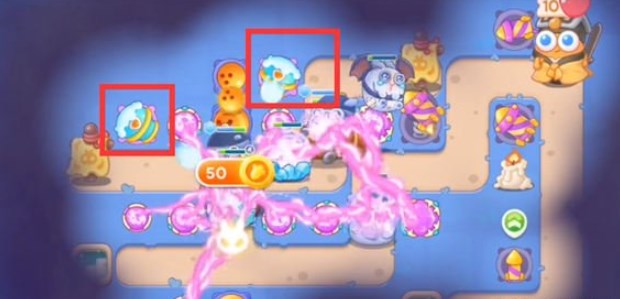 4.地图左半段的障碍物消除后,将炮塔中的雪球塔升级至满级,减速敌人;