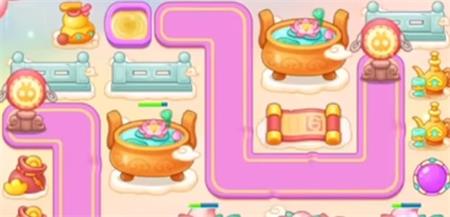 1.开局直接暂停,然后在右下角的位置造个三级魔法球,锁定上方的茶壶,然后左边造一个两级的元宝,茶壶拆掉之后,锁定左边的香炉,等第一只粉兔子走到这里的时候,再次暂停,取消对香炉的锁定,把这一波怪收掉。