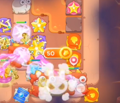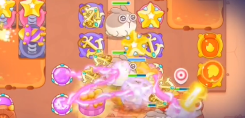 4、之后在左边建造两个星星塔一个电磁炮塔并给星星塔升级。