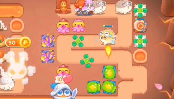 3.在中间放置两个火箭,来攻击飞天兔兔。