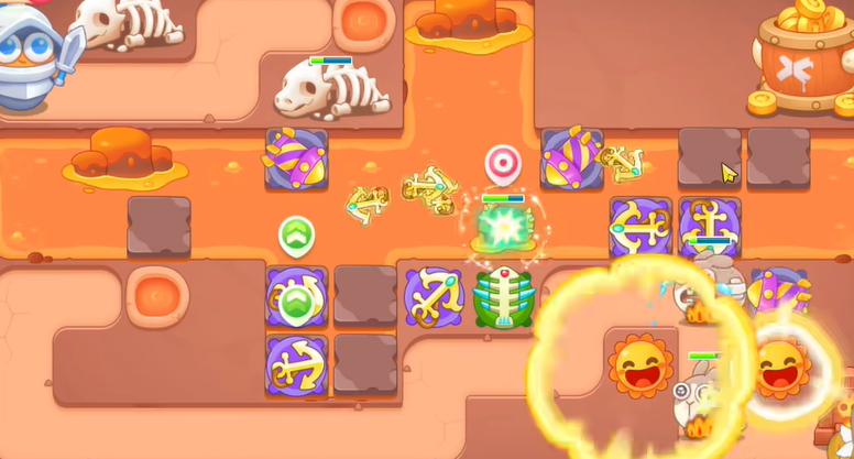 2、有金币建立导弹和船锚,船锚直接锁定岩浆上的岩石。