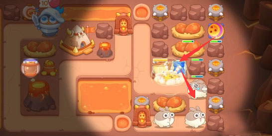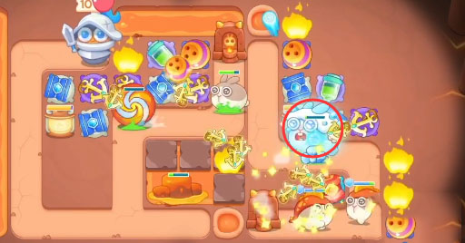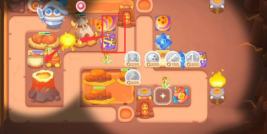 5、道具清完之后开始放置输出,也可以给已有的炮塔升满级,注意这一关的大冰冻兔。