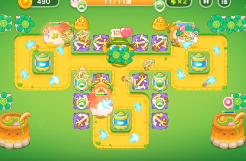 11、最后一波的时候就会有风扇塔继续在上方的道路增加。