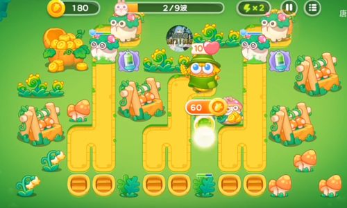 2、第二波对右边的毒针塔来进行升级,升级之后就进行攻击右边的兔子和障碍物。