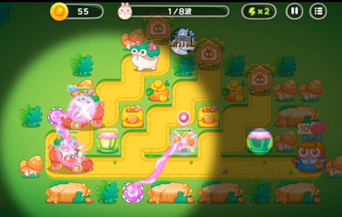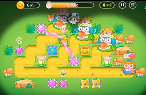 6、这一波下面的风扇塔是增加了的,中间的开始攻击兔子和障碍物。