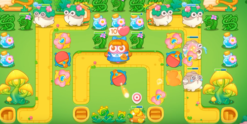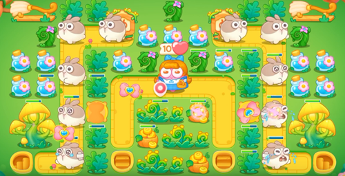 6、这一关卡是用中间的三个进行升级之后就能攻击道路上的兔子和两边的障碍物。