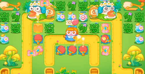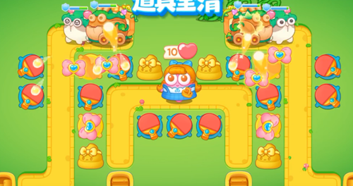 1、在这一关卡之中也是出现了新的道具蝴蝶结,先是建立一个兵乓球拍来攻击兔子。