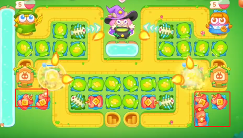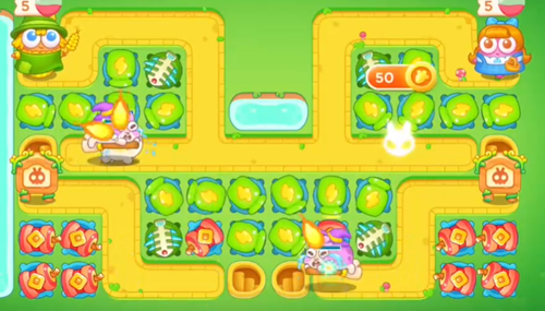 1、首先我们在中间放置瓶子炮,及时清理掉周围的道具,然后继续放瓶子炮,瓶子炮伤害很高,这关就靠他来了。