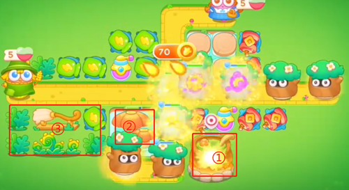 4、左右两边都需要多放置炮台,然后按照下面的顺序清理掉道具,下面的出口及时有炮台打出伤害。