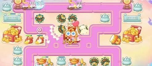 2、第一时间升级弓箭,然后在萝卜的右上角补一个弓箭,等右边的两个钱袋拆掉之后就可以清理左边了。