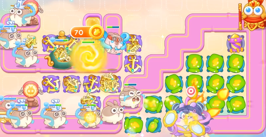 2、第二波之后我们在右边放置一个瓶子升到满级瓶子锁定钱袋子打(我们节省成本),中间我们继续增加船锚数量来增加伤害;