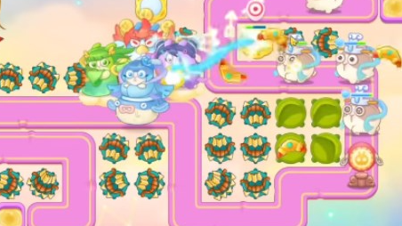 4、这个神仙基本上是可以锁定打的,沿着路线升级炮塔,没有的位置只多补一些炮塔,路口可以再放一些毒针,一直锁头打就可以,最后一波在右下角补一些飞机,有仙女兔和飞艇兔,比较烦。