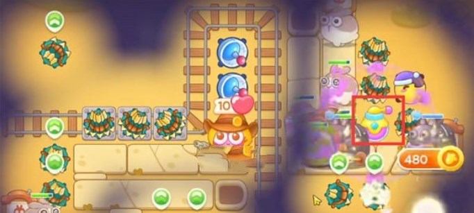 2.第二波多重箭升级锁定下方的道具,有钱继续建造炮塔,持续向左边地图清理道具;
