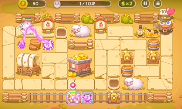 3、第三波的时候就差不多将大宝箱处理干净了,接下来将宝石塔放置到场地中间处,向四周围绕着展开。