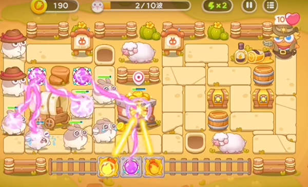 5、处理完毕左侧障碍物后,那么刚好就来到第五波了,这一波出现一个比较难缠的家伙(西部牛仔兔)。