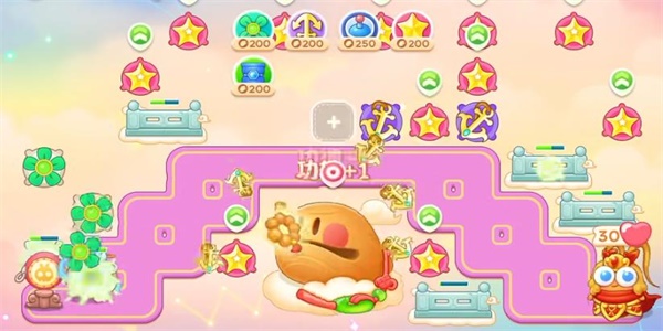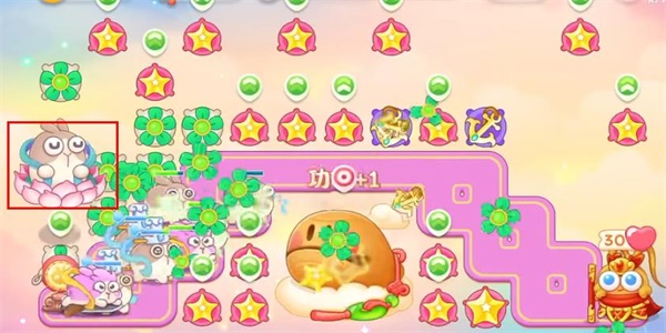 4、我们需要注意的是会有乘坐莲花的小怪出现,使用星星道具把它们全部赶走即可。