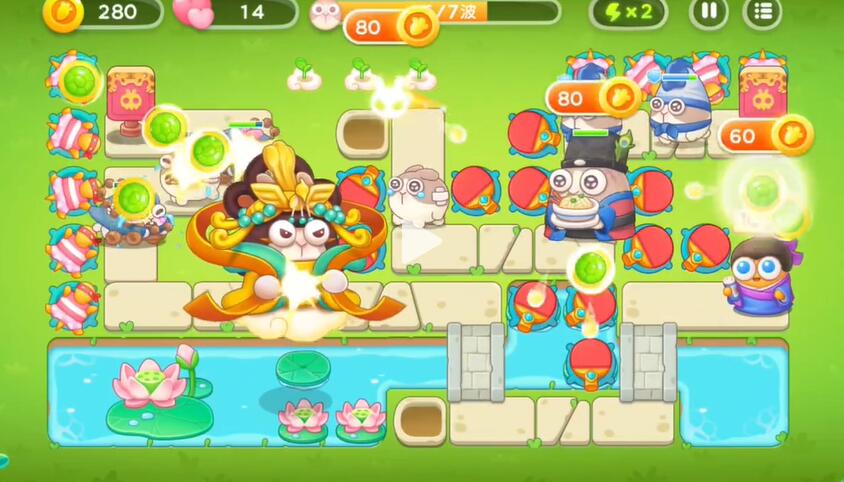 6、兔子非常的多,获得的金币足够将所有的炮塔全部升至满级。