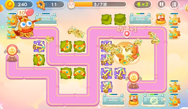 2、第二波就是把炮台都升级到满级,然后不断的在木鱼周围补充船锚。