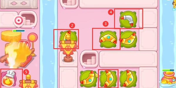 3、第三、四波也是放回旋镖和酒精瓶,按照序号顺序放就行了。