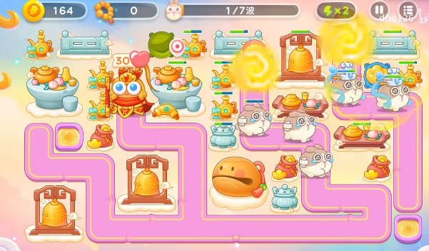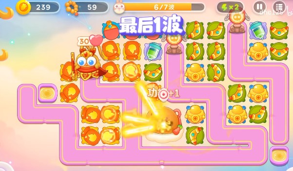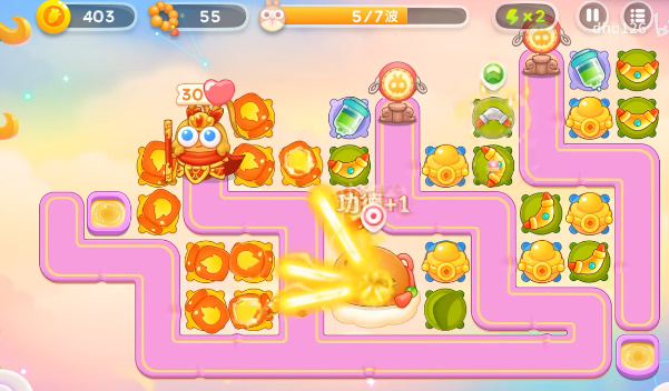 1、开局就在萝卜的上面放上回旋镖,然后右边的出怪口上放上一个金元宝。