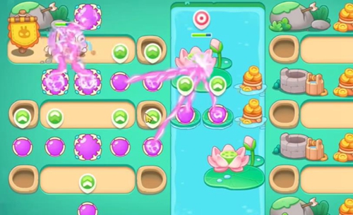 1、玩家在左侧放置炮台后,开始清理障碍物。