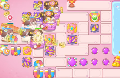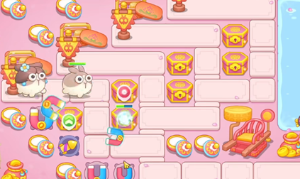 3、继续清理地图上的障碍和升级炮台,同时在上方补充蝴蝶结来压低怪物血量。
