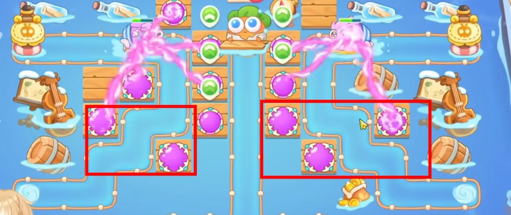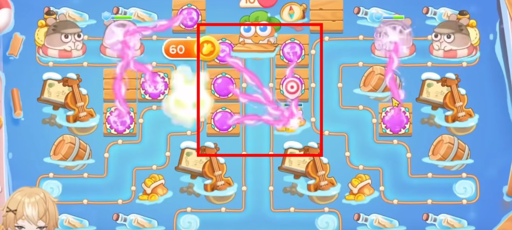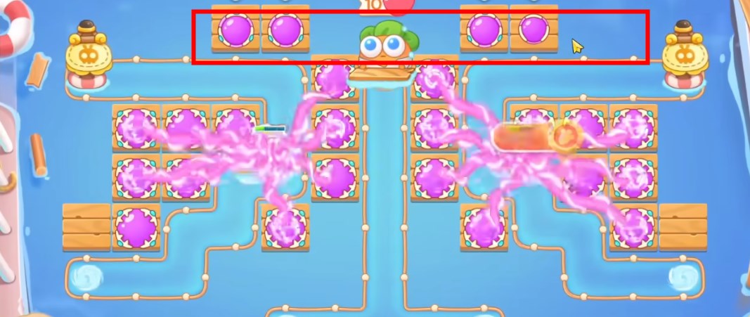 5、具体炮塔如图所示,这一关使用魔法球单通金萝卜!