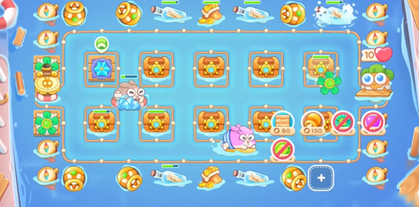 2、在空出来的格子上建造鱼雷,同时攻击中间的宝箱。