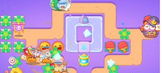 3、再在萝卜附近建造一个球拍炮台,集火攻击障碍物。