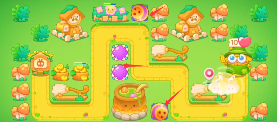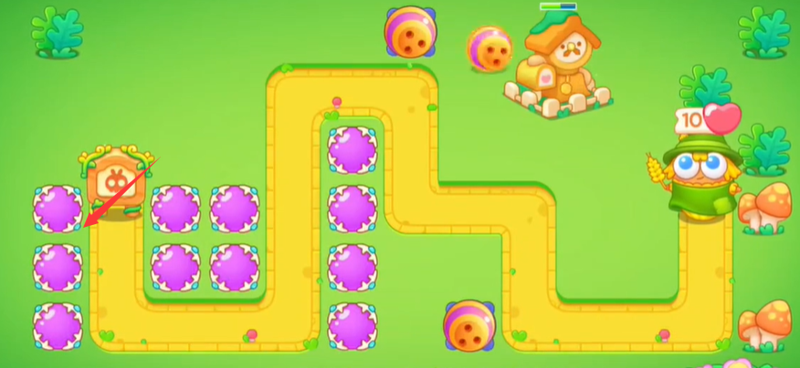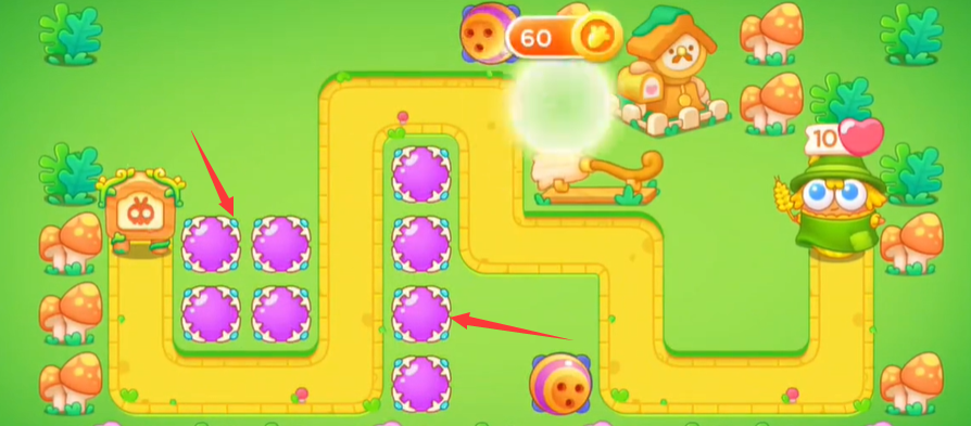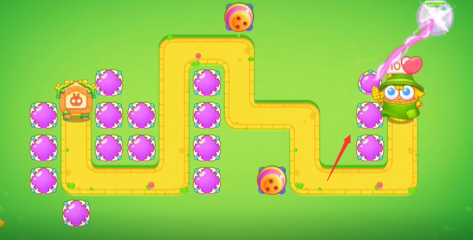 3、将最左侧的障碍物清掉后建造一列魔法球击杀小怪;