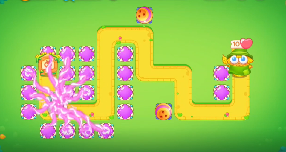 4、在右下角建造魔法球,清掉全屏的障碍物;