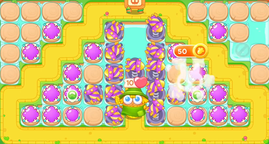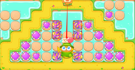 1、首先我们等水中出现木板,然后放置魔法球,等萝卜附近出现道具,及时打掉获得位置,然后在萝卜两边放置。
