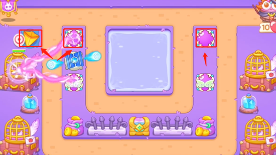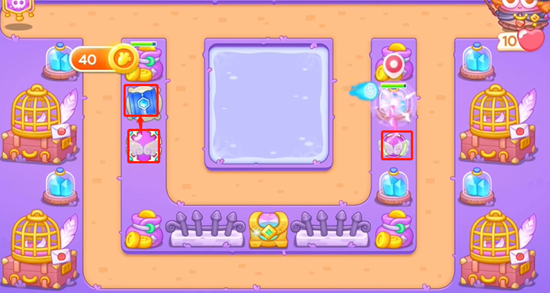 2、两边都打掉小道具之后,我们继续放置纸飞机和魔法球,确保有足够的伤害,同时也开始清理场上的道具。