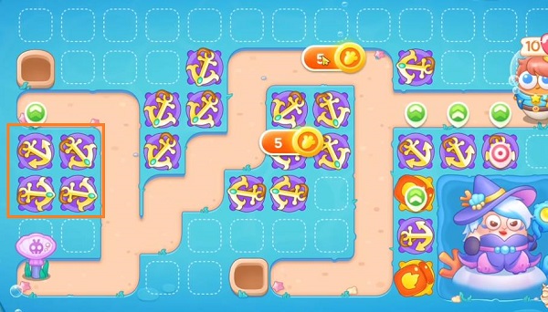 1、开局在上方位置摆放2个满级船锚,打掉中间的道具后继续摆放船锚,首领攻击是吐泡泡,第一时间暂停点掉就行。
