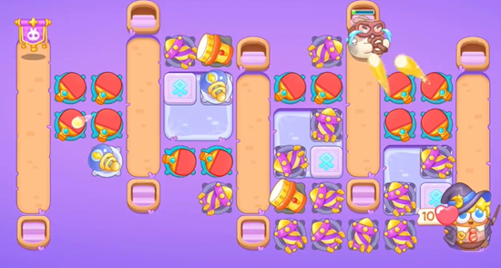2、之后我们放置手电把右下的栅栏打掉,继续放置乒乓球,然后一次往下开图,然后清理掉右边的道具。