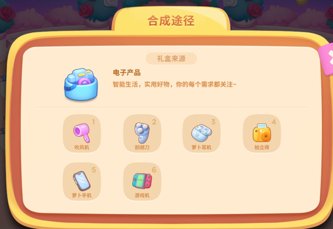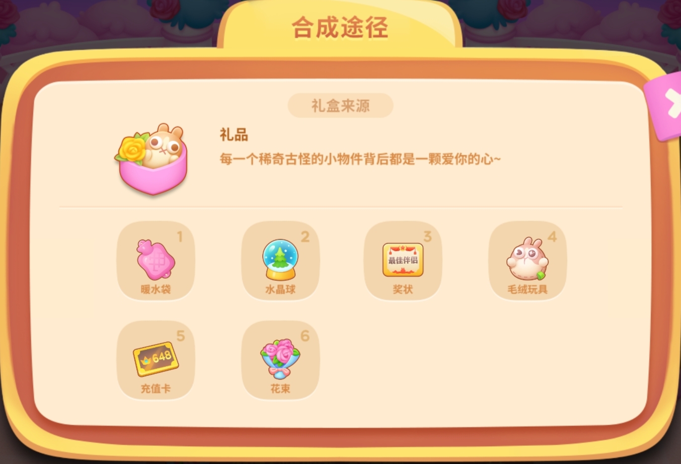 合成过程中,有概率出现被气泡包裹住的礼物。花费对应数量的宝石就可以立即获得哦!