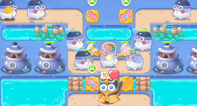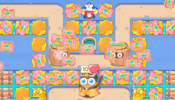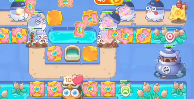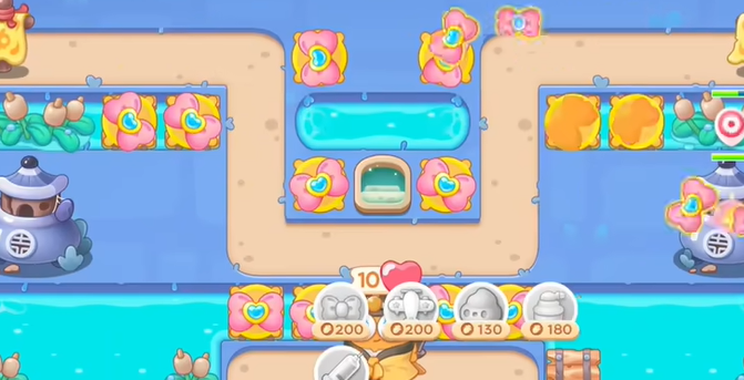 2、然后在水池中建造四个满级蝴蝶结,用来清除下方的道具