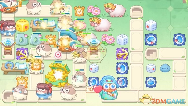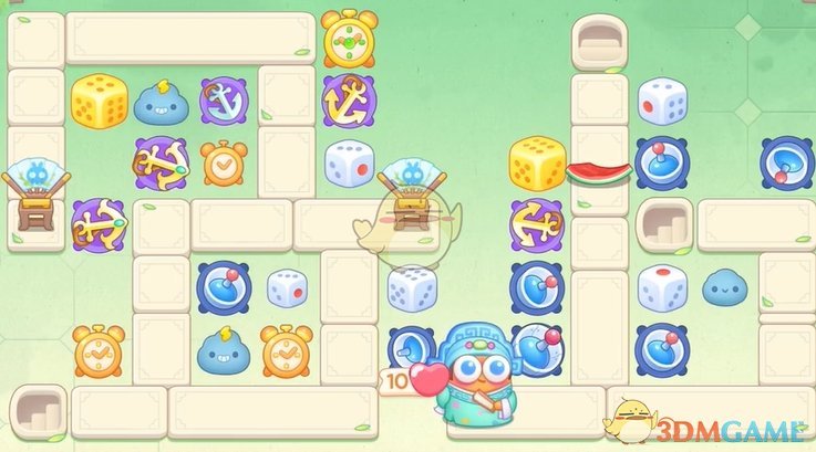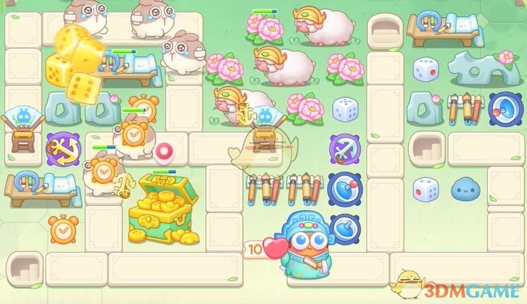 1、首先在右侧放置雷达,左侧放置骰子,清理怪物和道具;