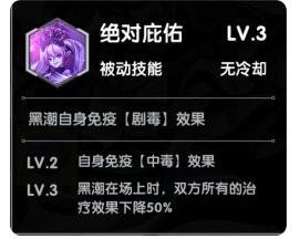 被动技能:绝对庇护。自身免疫中毒以及剧毒,在场时还可以提供50%的降疗,可以说是降疗神技。