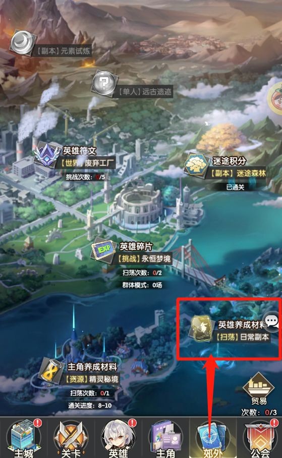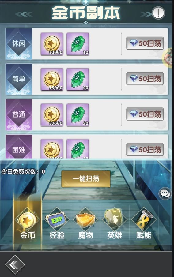 根据战力、玩家等级、天空之塔层数解锁对应关卡,副本难度越高每日可获得奖励越丰厚